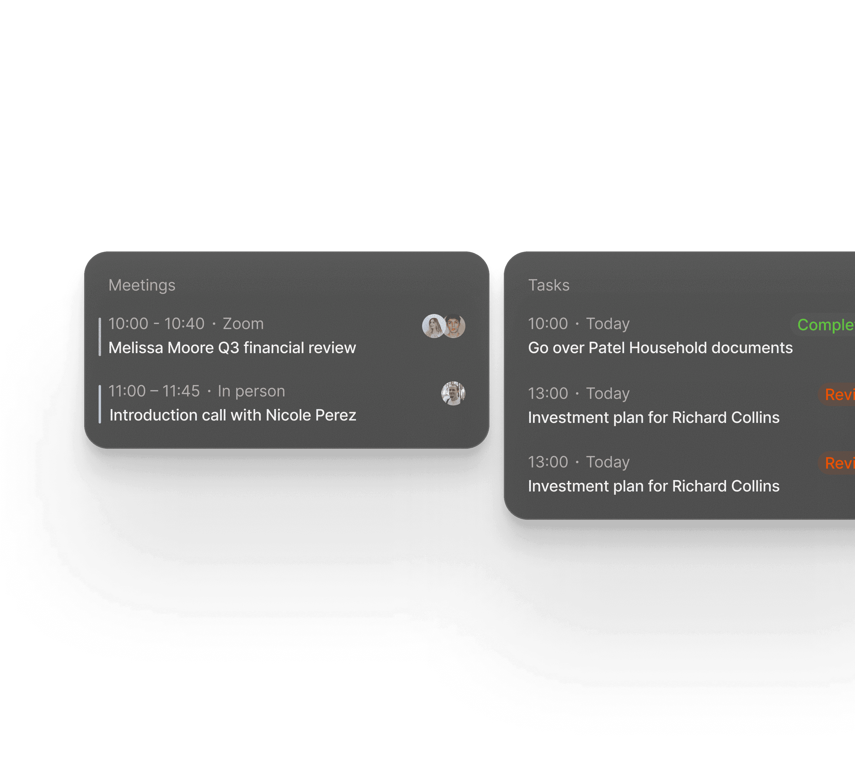 Client records, meeting notes, and tasks - captured automatically, searchable instantly